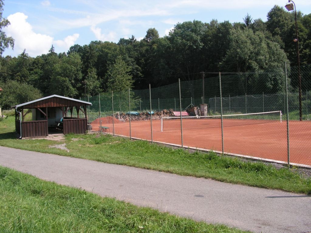 Tenisové hřiště je umístěno poblíž obecního úřadu na levém břehu Moravské Sázavy. Má dva dvorce. Hlavní s antukovým povrchem a cvičný s asfaltem. Nedílnou součástí je maringotka, která slouží jako operativní občerstvovací stanice, a přilehlé posezení, kterému místní obyvatelstvo říká "Pod plechem".